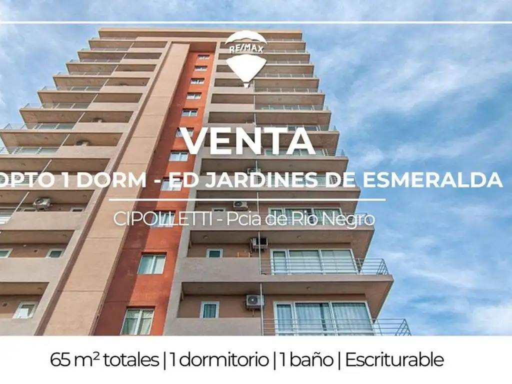 Remax vende en exclusiva departamento en Torre OESTE de Jardines de Esmeralda sobre calle Miguel Muñoz N°1081 de la ciudad de Cipolletti: