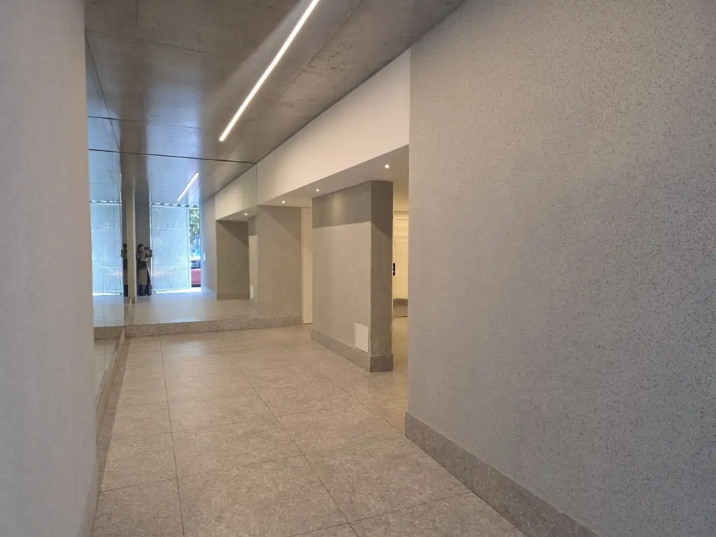 Departamento monoambiente de 45mt totales, con zaguán cubierto de ingreso de 6.53 m2. La unidad cuenta con único gran espacio integrado de cocina, comedor y living con salida al balcón con vista al frente.