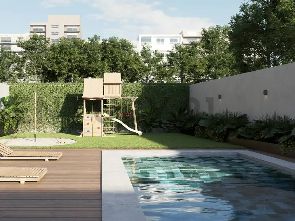 Unidad 1, ubicada en planta baja, super exclusiva con su piscina y jardín privados para disfrutar en familia.