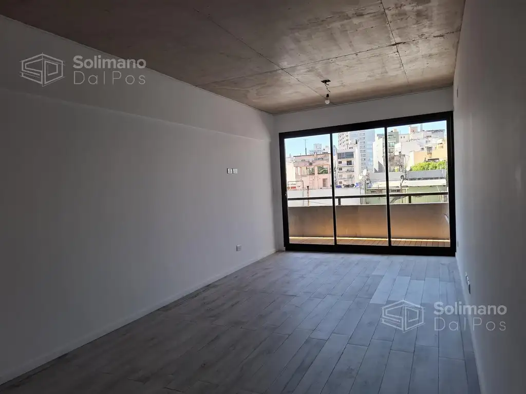 Monoambiente de 40 m2 totales con balcón de 5 m2 al frente. Cocina, living, comedor integrados. Baño completo.