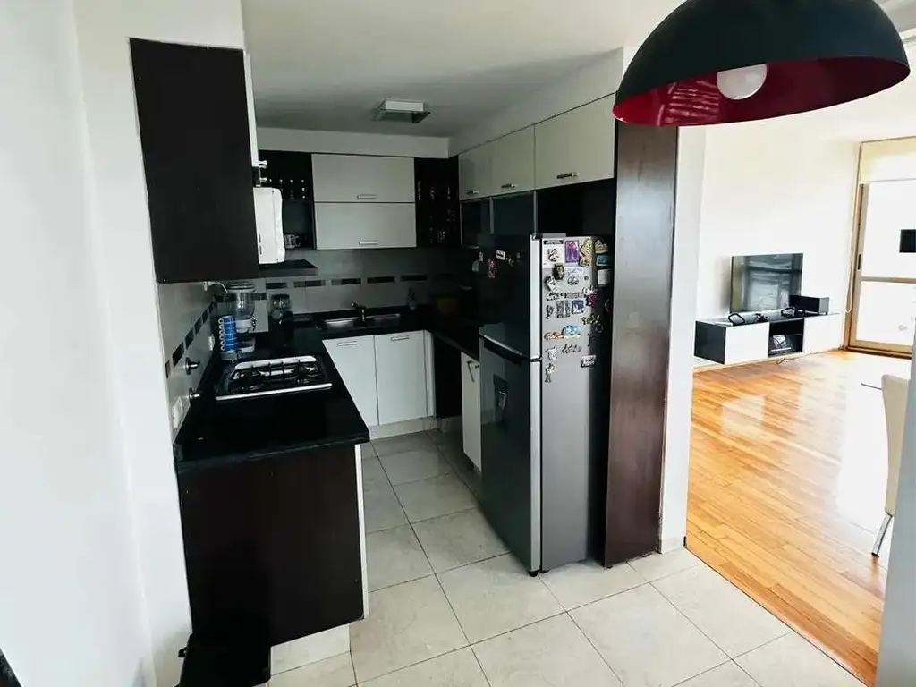 El edificio cuenta con amenities de alto nivel: pileta, sauna, gimnasio, dos salones de usos múltiples (uno en planta baja y otro en piso alto), laundry, estacionamiento para visitantes, rampa para silla de ruedas, grupo electrógeno, calefacción, aire acondicionado y otras comodidades modernas. Es apto crédito, permite mascotas, y su orientación norte asegura buena luz natural.
