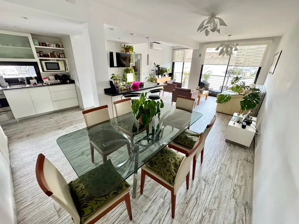 Cuenta con un segundo baño completo con ventilación y luz natural.El living comedor se integra armoniosamente con una cocina equipada, destacándose por sus terminaciones de calidad, mesada doble mármol Brasil, isla con amoblamientos a medida , pisos de porcelanato símil madera y ventanales con doble vidriado que brindan acceso a n balcón corrido con vistas abiertas.el espacio se destaca por sus detalles y terminaciones, su luminosidad , funcionalidad y amplitud.Además, el departamento incluye una cochera fija semicubierta, con portón automático, La propiedad cuenta con AMENITIES, que incluyen piscina, salón de usos múltiples con parrilla y una terraza con vistas panorámicas.ESTá LISTO PARA ESCRITURAR EXPENSAS JULIO 2025 $ 180.000 Construido en 2021,