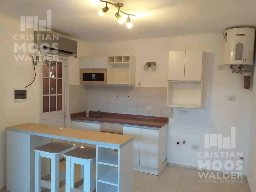 El departamento cuenta con: Comedor- cocina mesada, bajo mesada y alacena, mesa desayunadora , termo eléctrico. Un dormitorio con placard,muy luminoso y un baño completo. Además cuenta con patio interno.