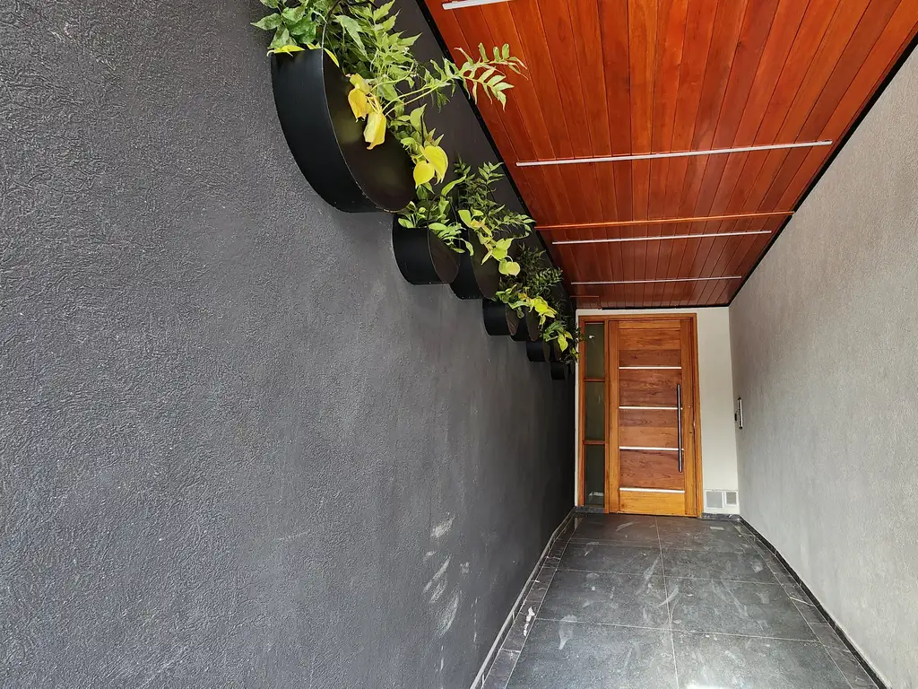 - Patio amplio con parte techada y parte libre con pasto