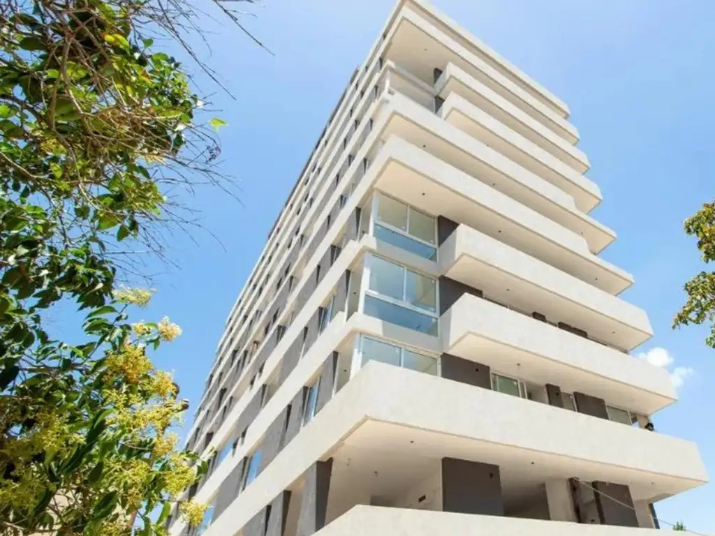 Cuenta con cocina y living comedor integrados , balcón, baño completo, dos dormitorios con placard de los cuales el principal es en suite con segundo baño completo. Terraza propia e independiente al contra frente del ultimo piso y cochera cubierta. Mas la terraza común del edificio con Sum y parrilla.