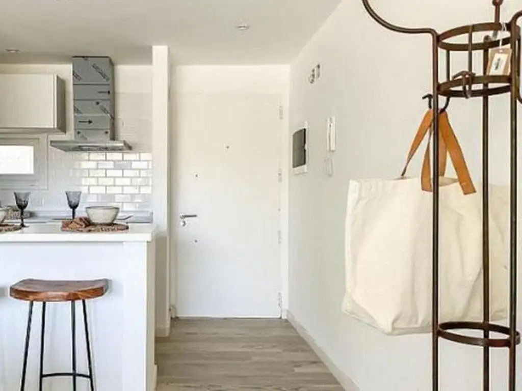 Equipos individuales frío calor instalados. Muebles de cocina e interiores de placards completos en melamina blanca. Anafe vitrocerámico de cuatro hornallas y horno eléctrico negro de 5 funciones, extractor con salida al exterior marca TST.