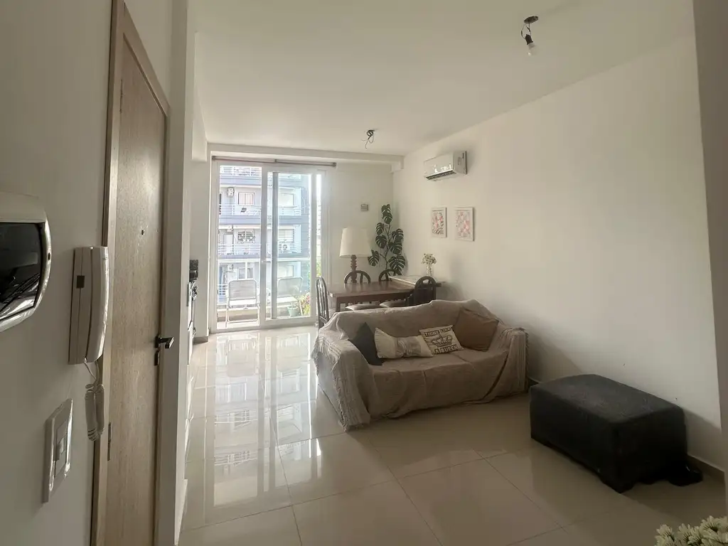 Al ingreso nos encontramos con un espacioso y luminoso living comedor con cocina integrada, pisos en porcelanato y aire acondicionado frio/ calor.