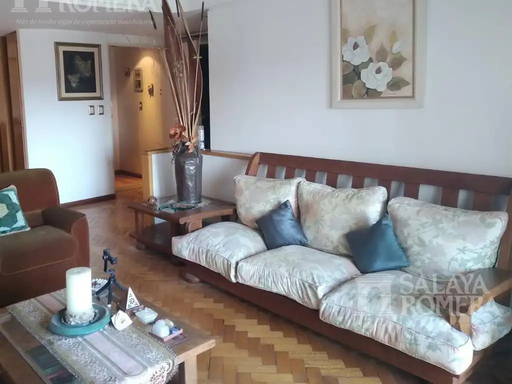Living comedor amplio doble circulación, con salida al balcón corrido. Muy luminoso, pisos en buen estado de parquet. En el sector del comedor posee un mueble vajillero de época realizado a medida.