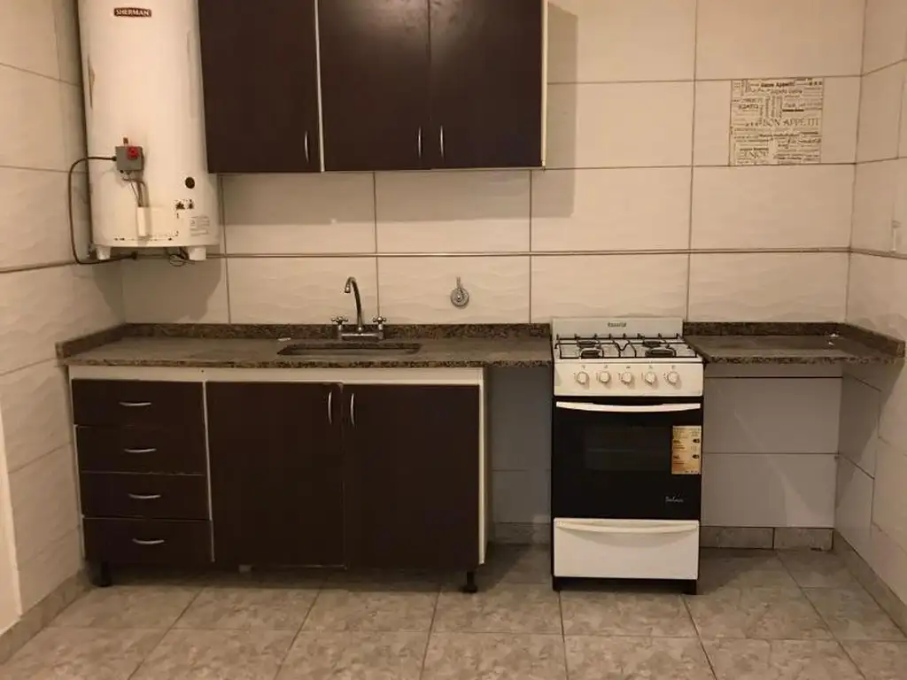 El departamento se distribuye en una cómoda cocina comedor, dos dormitorios luminosos y baño completo. Calefacción por tiro balanceado, pequeño patio y espacio para lavadero.