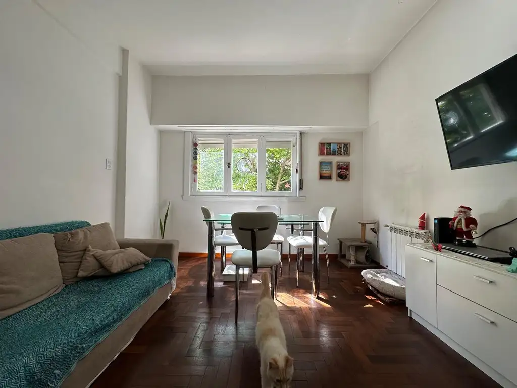 El departamento se presenta en muy buen estado y cuenta con living comedor al frente, luminoso, cocina separada y reciclada, lavadero independiente con ventilación natural, dos baños (uno de ellos con ventilación natural) y dependencia de servicio, ideal para utilizar como escritorio o espacio de trabajo.