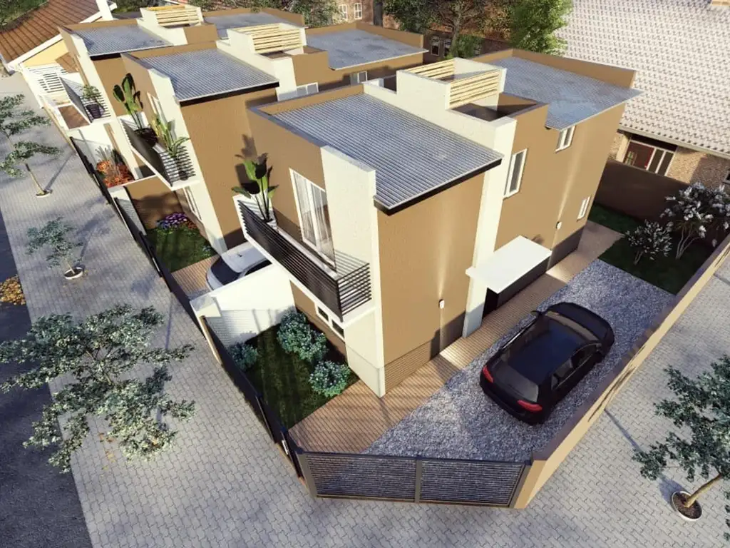Cada unidad funcional posee en planta baja acceso por sala de estar, cocina, y toilette, en planta alta por escalera, un dormitorio con vista al frente con balcon, segundo dormitorio o sala de estudio, y baño con accesorios y artefactos completos.