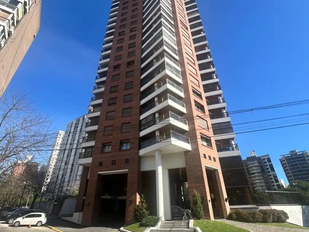 Vendo muy buen depto en torre de categoría con una excelente vista al río, en pleno barrio Martin. La unidad en piso alto cuenta con un gran ambiente principal (living, sala de estar, comedor), cocina separada con barra desayunadora, alacenas y muebles bajo mesada, lavadero independiente, habitación y baño de servicio, tres dormitorios con placares y baños en suite (el dormitorio principal con vestidor y jacuzzi), tres balcones con increibles vistas al río, monumento a la bandera e islas. Calefacción por radiadores, aire acondicionado central, aberturas de aluminio con DVH, pisos de madera maciza, puertas y marcos de madera, dos cocheras paralelas y una baulera. La torre cuenta con vigilancia 24 hs, quincho, salón de fiestas, piscina y solarium.