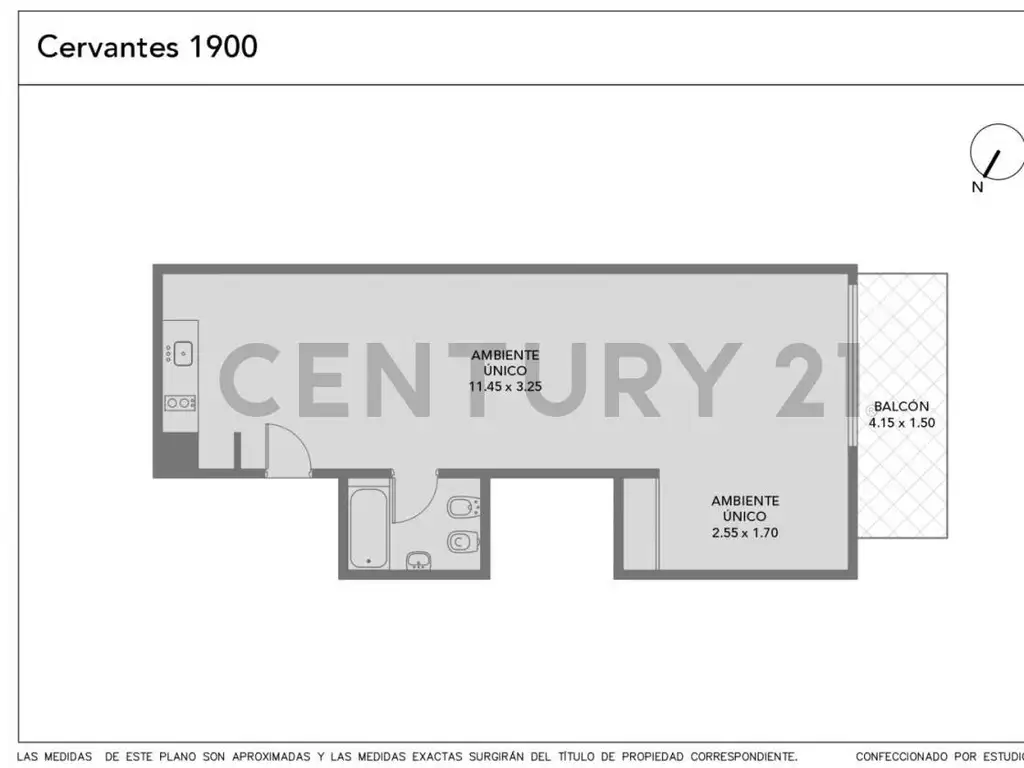 Superficie total: 57.95 m2Superficie cubierta: 51.73 m2 Superficie balcón: 6.23 m2 (4.15m x 1.5m)Salón-cocina abierta: 11,45m x 3,25m y 2,55 x 1,70 Baño: 2,20m x 1,55mPisos Porcelanato San Lorenzo 60 x 60.