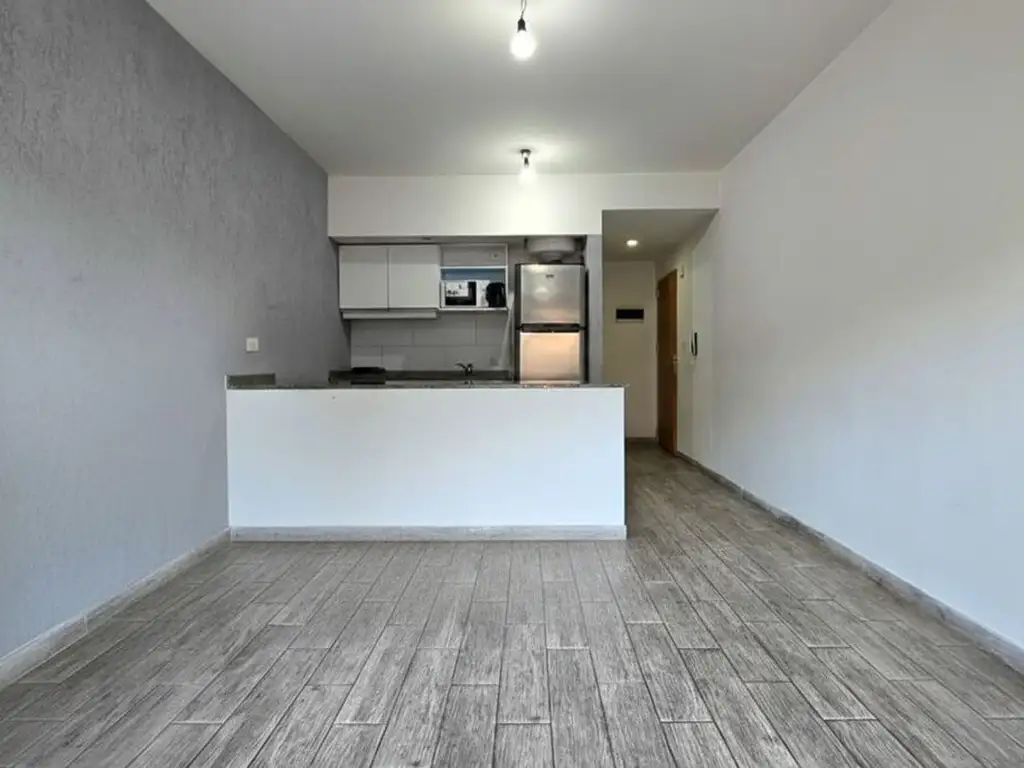Moderno monoambiente con gran ventana al frente. Muy luminoso.