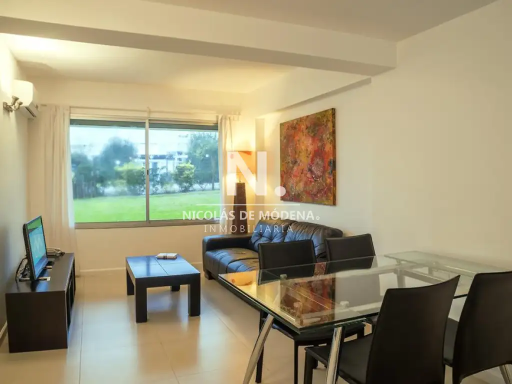 Apartamento con capacidad para 4 personas, tiene dos dormitorios y dos baños (uno de los dormitorios es en suite), living comedor, cocina con una terraza propia y estacionamiento para un auto.