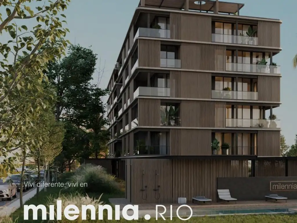 Departamento 2 ambientes con balcón en L amplio y cochera privada semicubierta, en el Complejo Milennia Rio, con orientación Sudoeste, vista al Río Luján y Bahía Grande. Milennia Rio redefine el diseño residencial en Nordelta. Esto incluye amenities como Sum, Parrilla y quincho, Gym con Yoga Space, Piscina de 14 metros con Solarium. La construción está hecha con hormigón visto que enmarcan solidés y carácter, con revestimientos de WPC, un material de bajo mantenimiento y resistente. Animate a vivir en un pulmón de natural, que conecta con el aire, la luz, y el paisaje, brindando vitalidad y bienestar a tu vida diaria.