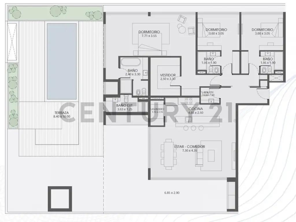 • Amplias terrazas semicubiertas.