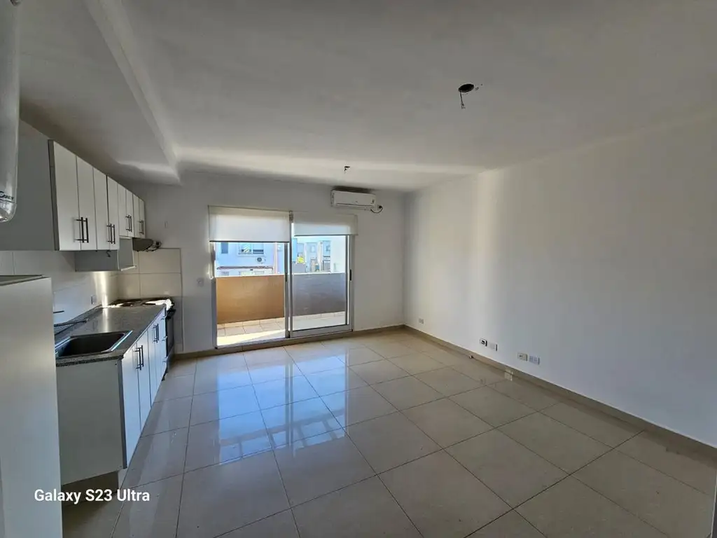 Cuenta con una cocina integrada al living comedor con salida al balcon
