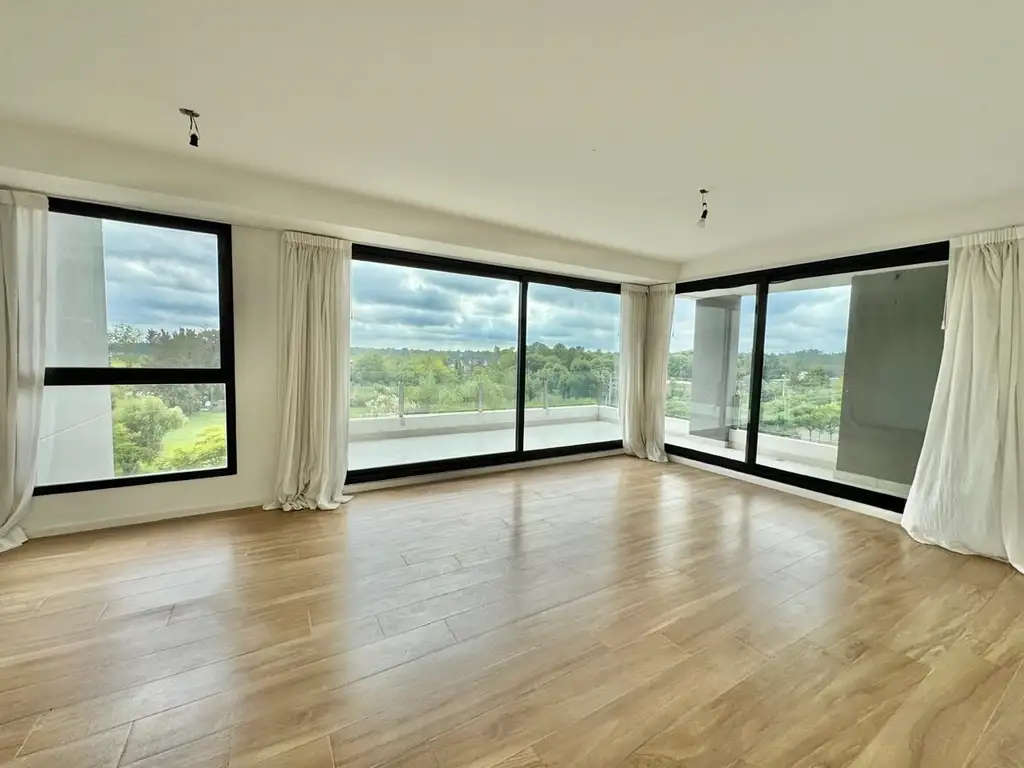 Cuenta con tres habitaciones en suite, un toilette de recepción, una cocina moderna y funcional, y un amplio living-comedor con acceso a un balcón con parrilla con vista abierta. La unidad se entrega con cortinas y aire acondicionado en todos los ambientes. Aberturas de aluminio doble vidrio.