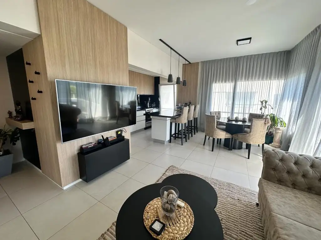 El diseño de planta abierta permite una excelente integración con la cocina y la terraza.