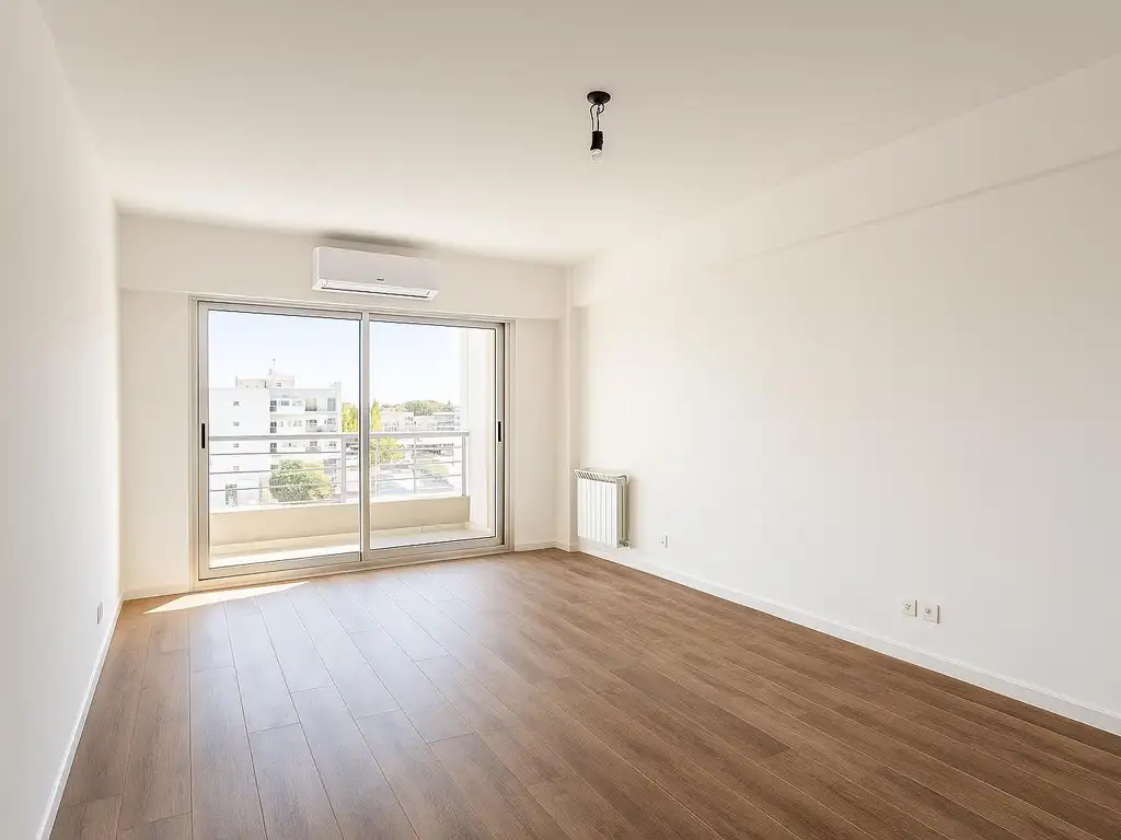 Cocina equipada con bajo mesada, alacena y horno instalado. Baño completo con mampara de vidrio, secatoallas eléctrico y diseño funcional. Confort asegurado: incluye dos aires acondicionados. Placard con interiores terminados para máxima organización.