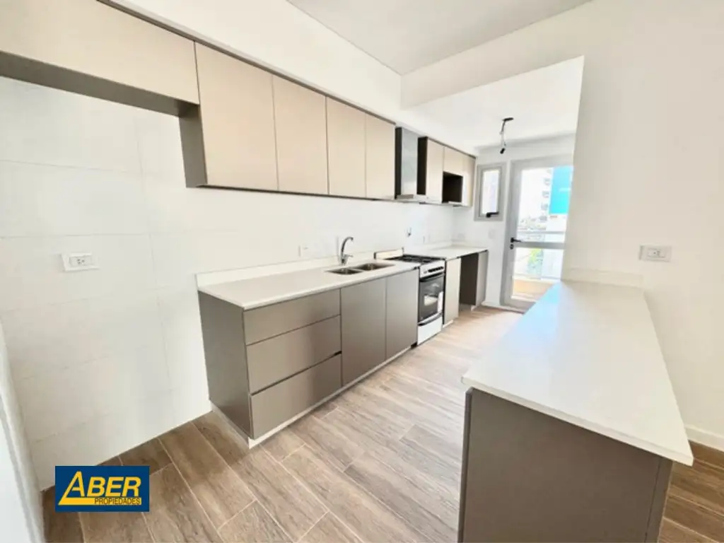 Cocinas equipada con mesada de Silestone de 2cm de espesor, cocina a gas primera marca y campanas de extracción de acero inoxidable marca TST o similar. Espacio para lavarropas bajo mesada