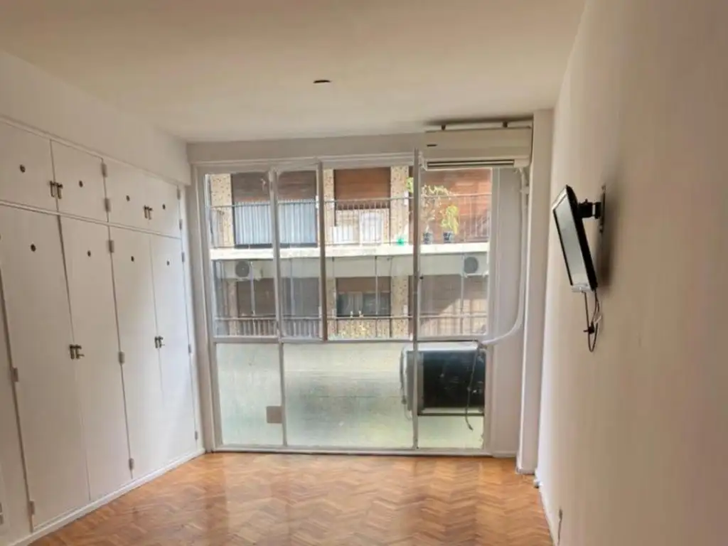 Se vende impecable departamento monoambiente amplio totalmente reciclado, se ingresa por hall, cocina tipo kitchenette con cocina a gas, amplio living estar con placard empotrado enorme de techo a piso; ventanal vidriado al frente (sobre Bustamante); baño reciclado con ducha.