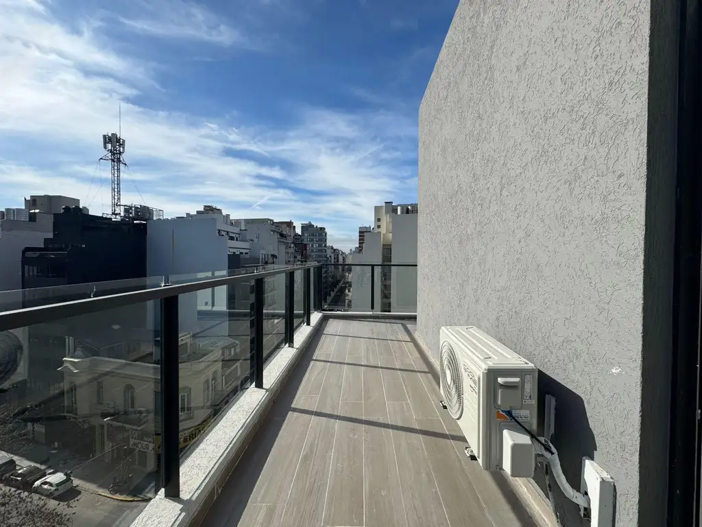 El departamento es un dos ambientes ubicado en un 8 piso, al ingresar cuenta con un toilette, una cocina completa integrada con living comedor con salida a amplio balcon en esquina, habitacion con baño y placard.