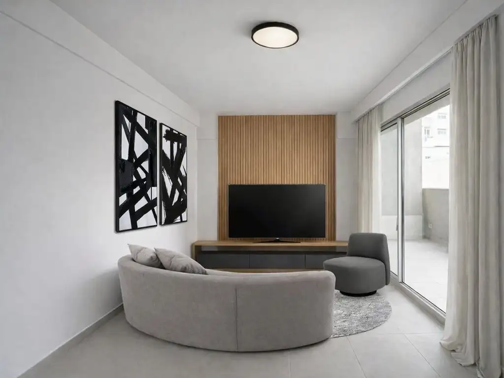 Comprende un amplio living-comedor con cocina completa integrada y barra desayunadora, con salida a amplio balcón aterrazado.