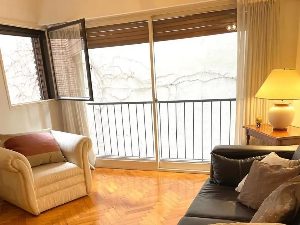 Pisos de parquet muy bien conservados, cocina con comedor diario y entrada de servicio, baño compartimentado, lavadero separado y dependencia de servicio también con placard. La unidad cuenta con 3 equipos de aire acondicionado y puertas blindadas. Cochera fija en primer piso.