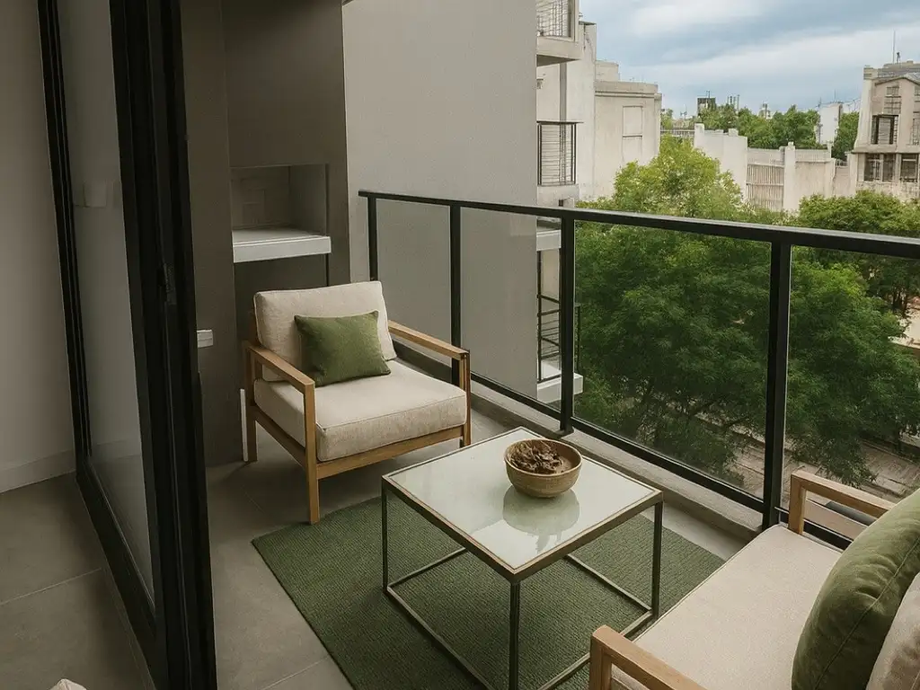 * Balcón aterrazado con parrilla.
