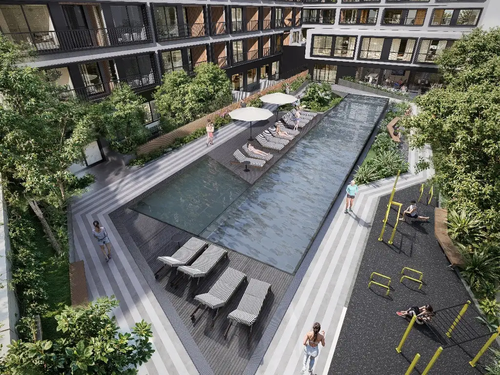 La unidad forma parte de un edificio con SUM y parrillas, cancha de pádel, jardín central con amplios espacios verdes, spot de entrenamiento outdoors, piscina olímpica descubierta y gimnasio profesional, brindando una propuesta integral de confort, recreación y vida activa.