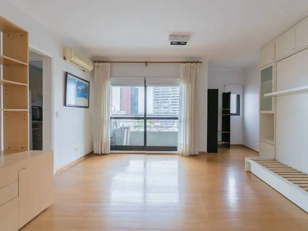 Monoambiente en TORRE BULNES. Piso alto con muchísima luz. Balcón. Cocina separada y baño completo. Seguridad 24 horas. Amenities: pileta, gimnasio y SUM.