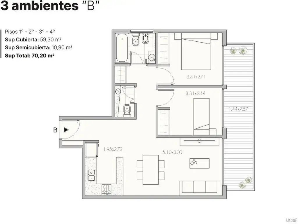 Sup. Total: 70 m2
