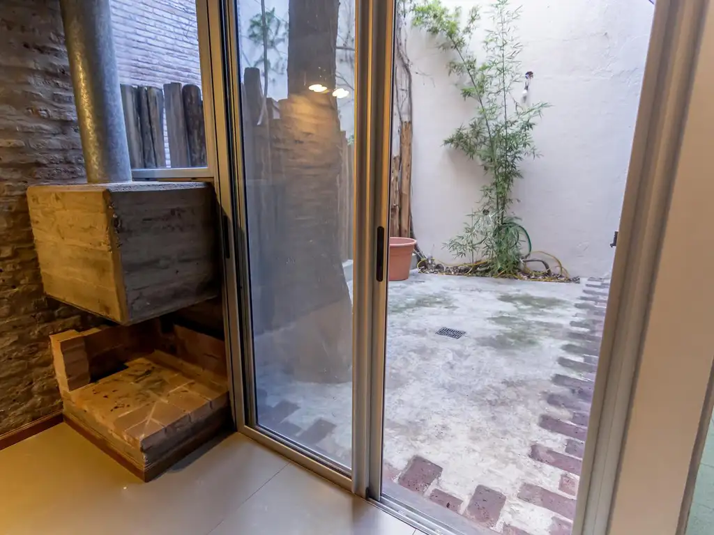 La unidad combina materiales y estilos con una estética moderna: techos de hormigón visto, paredes de ladrillo expuesto y barandas de pinotea que integran lo clásico con lo actual, generando un ambiente único, cálido y sofisticado.