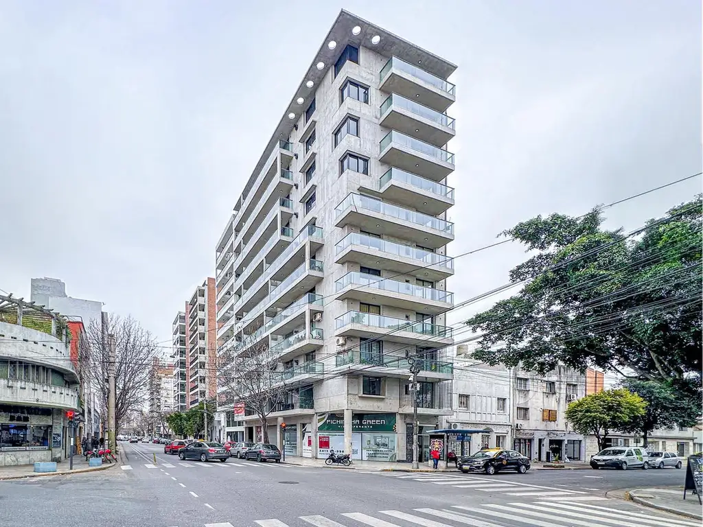 Proyecto: Edificio Pichincha Green con planta baja más 10 pisos con tipologías de 1 y 2 dormitorios, 2 ascensores en palieres diferentes, quincho o SUM con parrillero y patio de uso común. Control de Acceso y servicio de limpieza. Locales comerciales en PB.