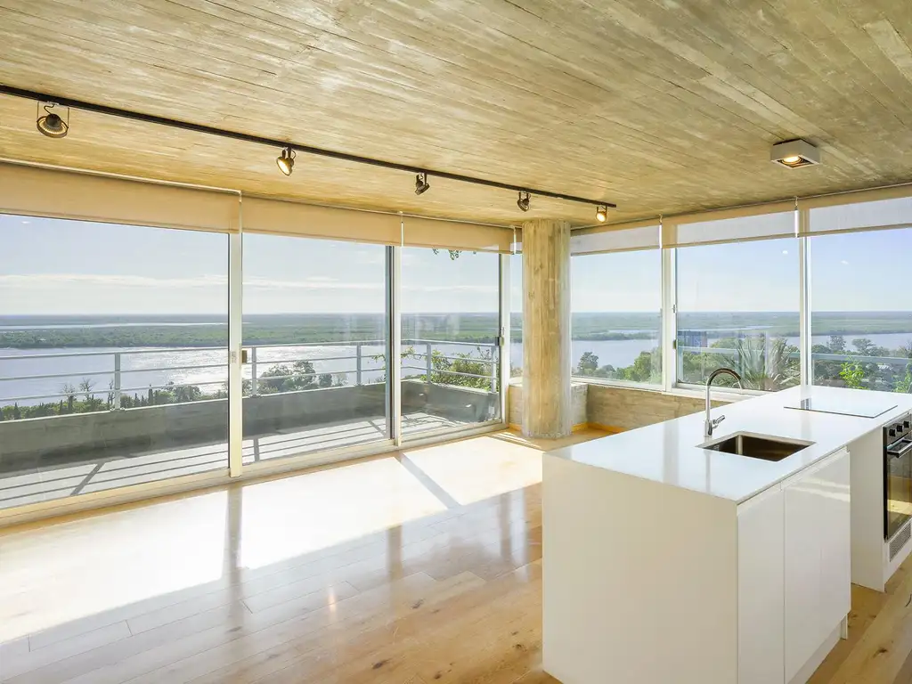 Ingreso desde living comedor, cocina integrada. Salida a balcón terraza con orintación Norte donde se puede disfrutar de vistas al Río. Toilette. Tres dormitorios, principal en suite con amplio vestidor; Dos dormitorios amplios con placard con sus interiores terminados. Baño completo.