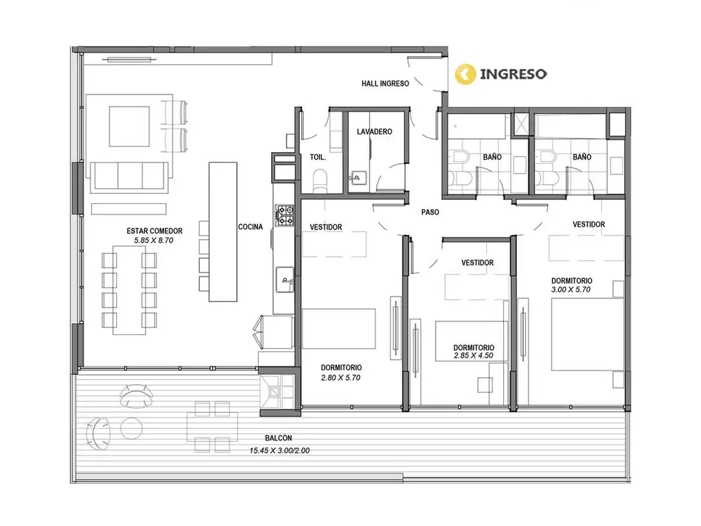 3 dormitorios
