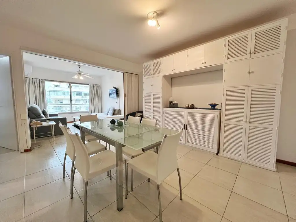 Este apartamento se ubica en el piso 4 y cuenta con capacidad para 4 personas. Comedor diario con mesa extensible y 6 sillas, living con sillones cama y Tv, este espacio se divide con una puerta rebatible.