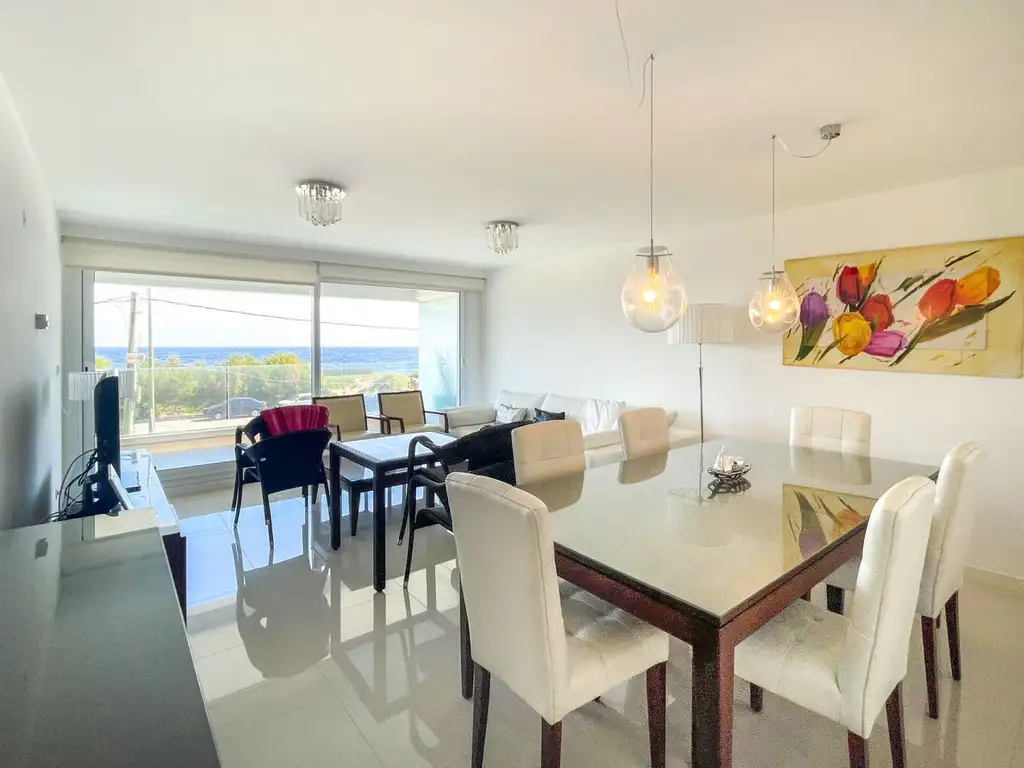 Espectacular apartamento en primera fila de Playa Mansa. Hermosa vista, cómodo living comedor, salida a la terraza.