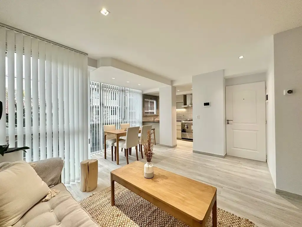 La unidad esta conformada por amplio living-comedor al frente, con cocina dividida por barra desayunadora. y toilette de servicio.