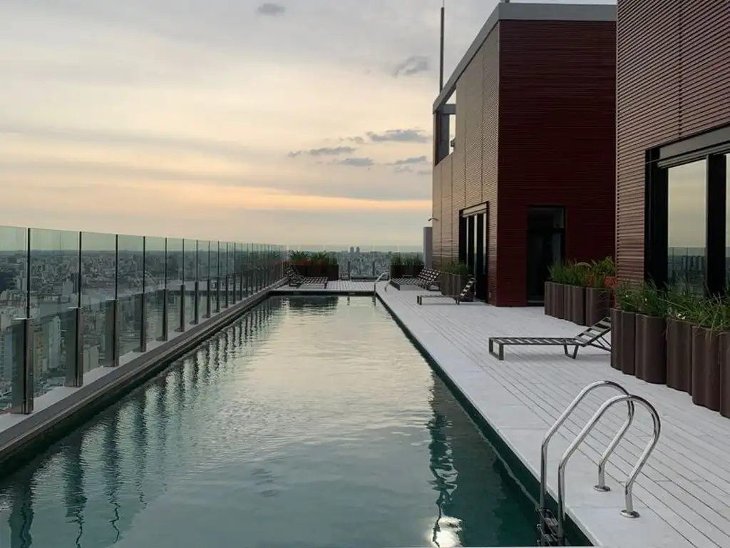Espectacular monoambiente Se Vende con Renta, ubicado en el piso 34, torre 1 del Quartier del Bajo, con las mejores vistas panorámicas hacia el Rio, los diques de Puerto Madero y ciudad. Con Cochera para Moto.