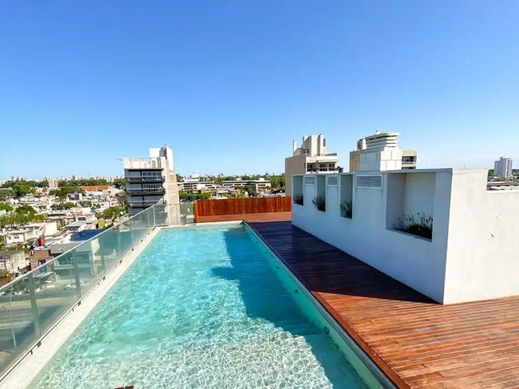 Terraza panorámica con pileta y solarium, gimnasio, spa, jardines, SUM, juegos para niños.