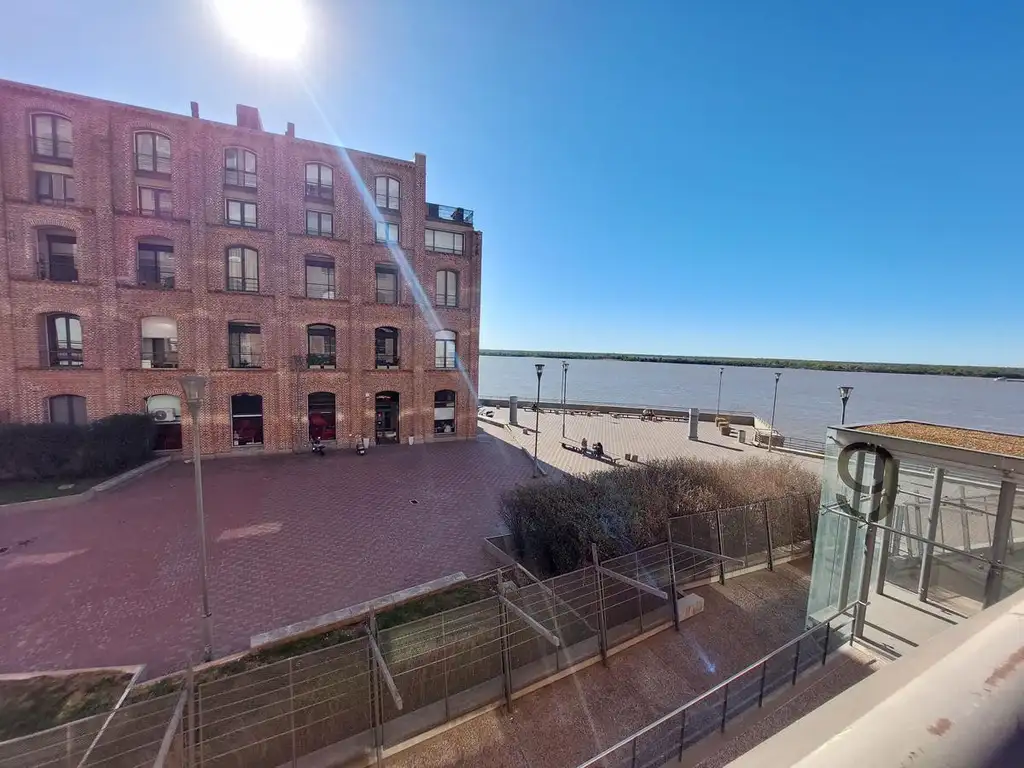Amplisimo dormitorio en entrepiso de 25 m2. Amplio balcón con vista franca al río.