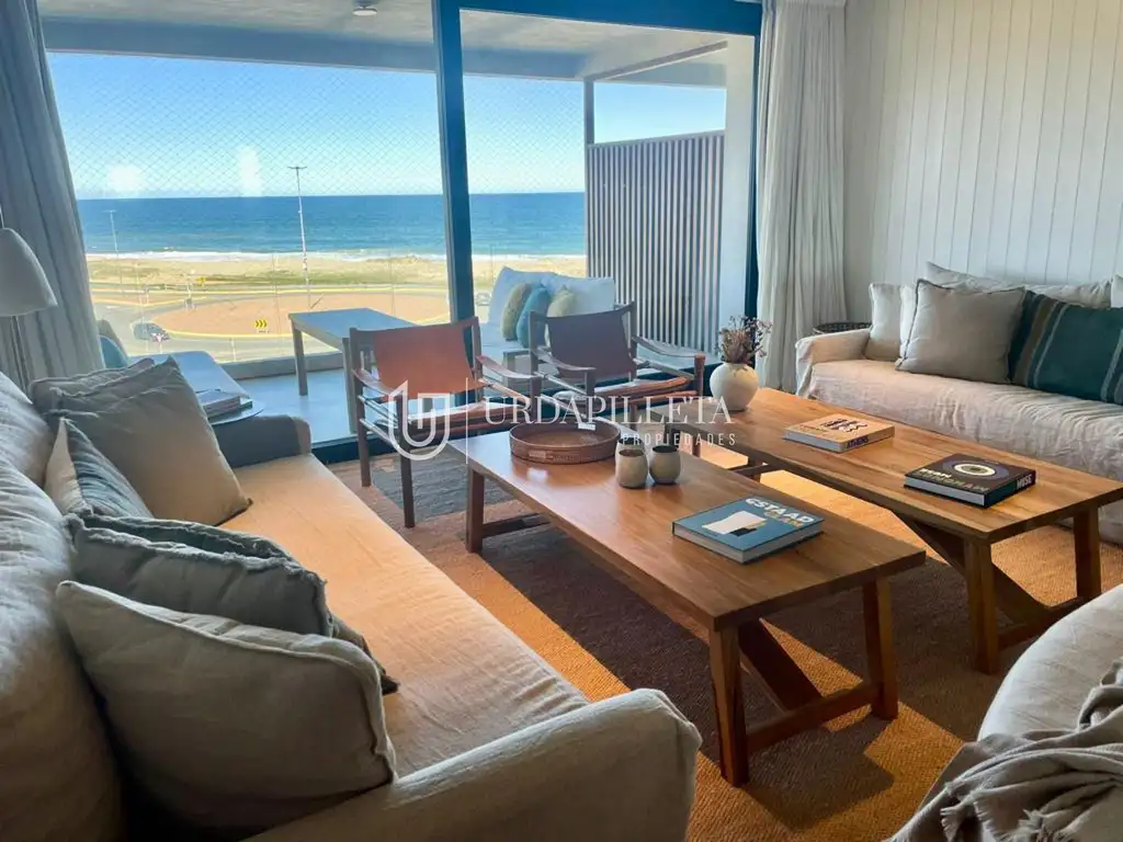 Apartamento ubicado en Manantiales, frente a la playa. Cuenta con dos terrazas con vistas al mar.