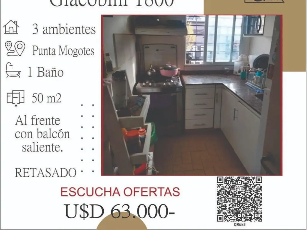 Departamento de 3 ambientes, Punta Mogotes.