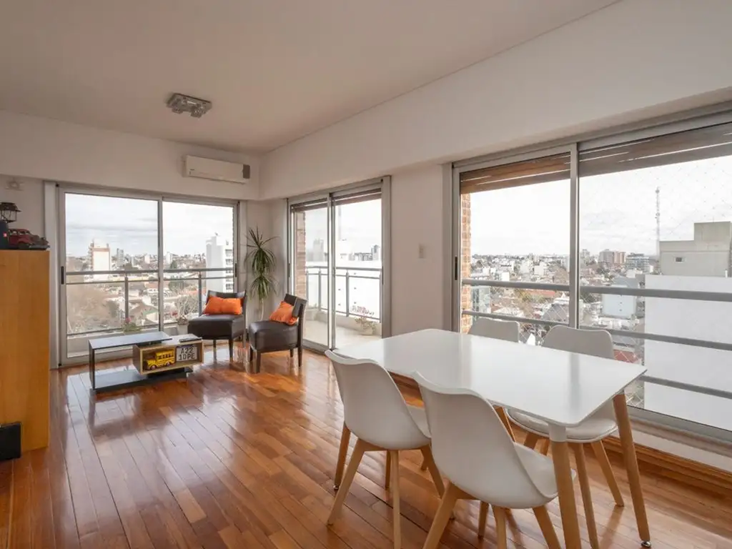 Al ingresar un amplio living comedor con salida al balcon en L lo cual lo hace luminoso y con muy buena vista