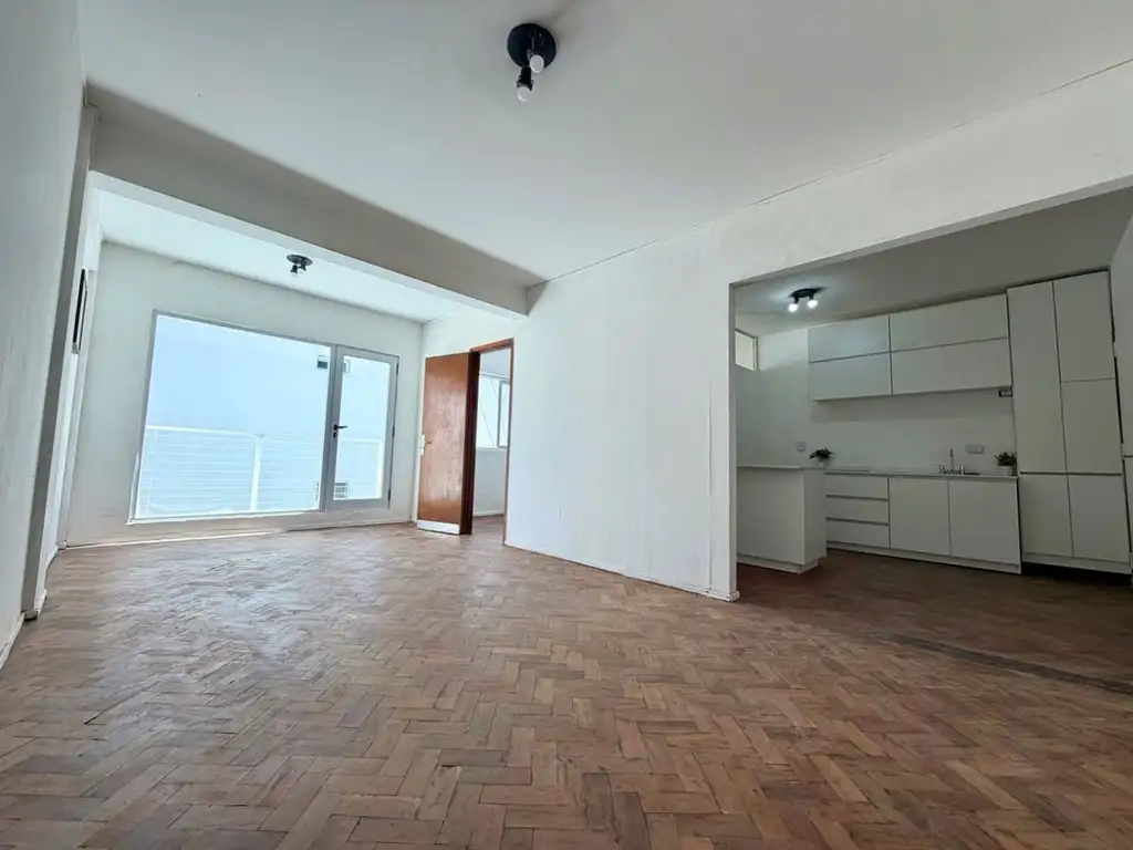 El living comedor tiene muy buena amplitud, salida directa al balcón, y pisos de madera originales que aportan calidez y personalidad al espacio.