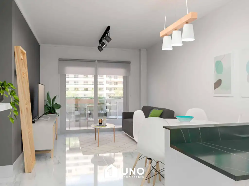 Compuesto por el estar/comedor con acceso al balcón contrafrente, cocina semiseparada, con mesada de mármol y completamente amoblada. Dos dormitorios con placard, uno con salida al balcón. Baño completo.