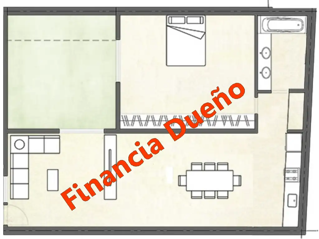 Compuesto por amplia y amplio living-Comedor con cocina integrada, un Dormitorio amplio, Baño completo y Patio.